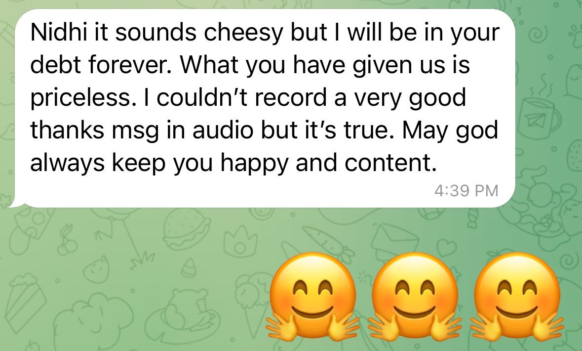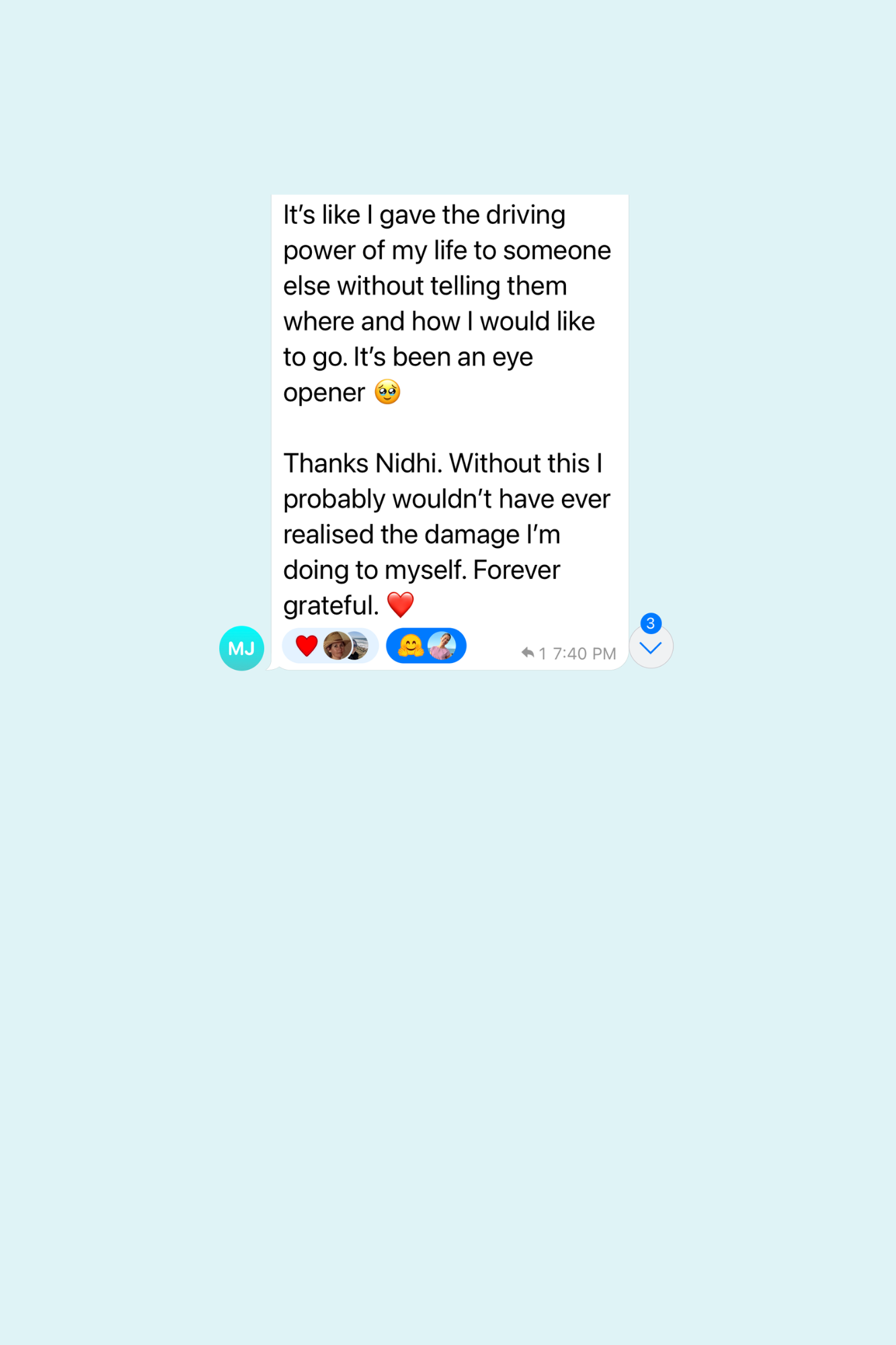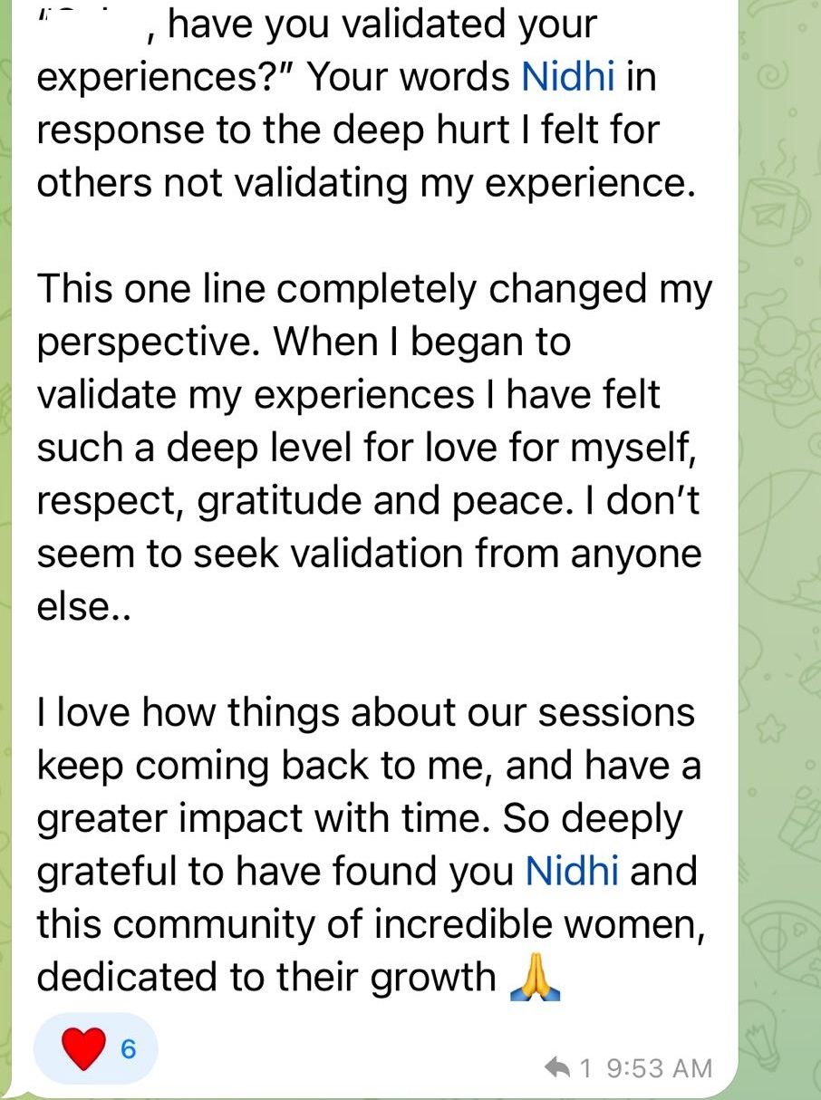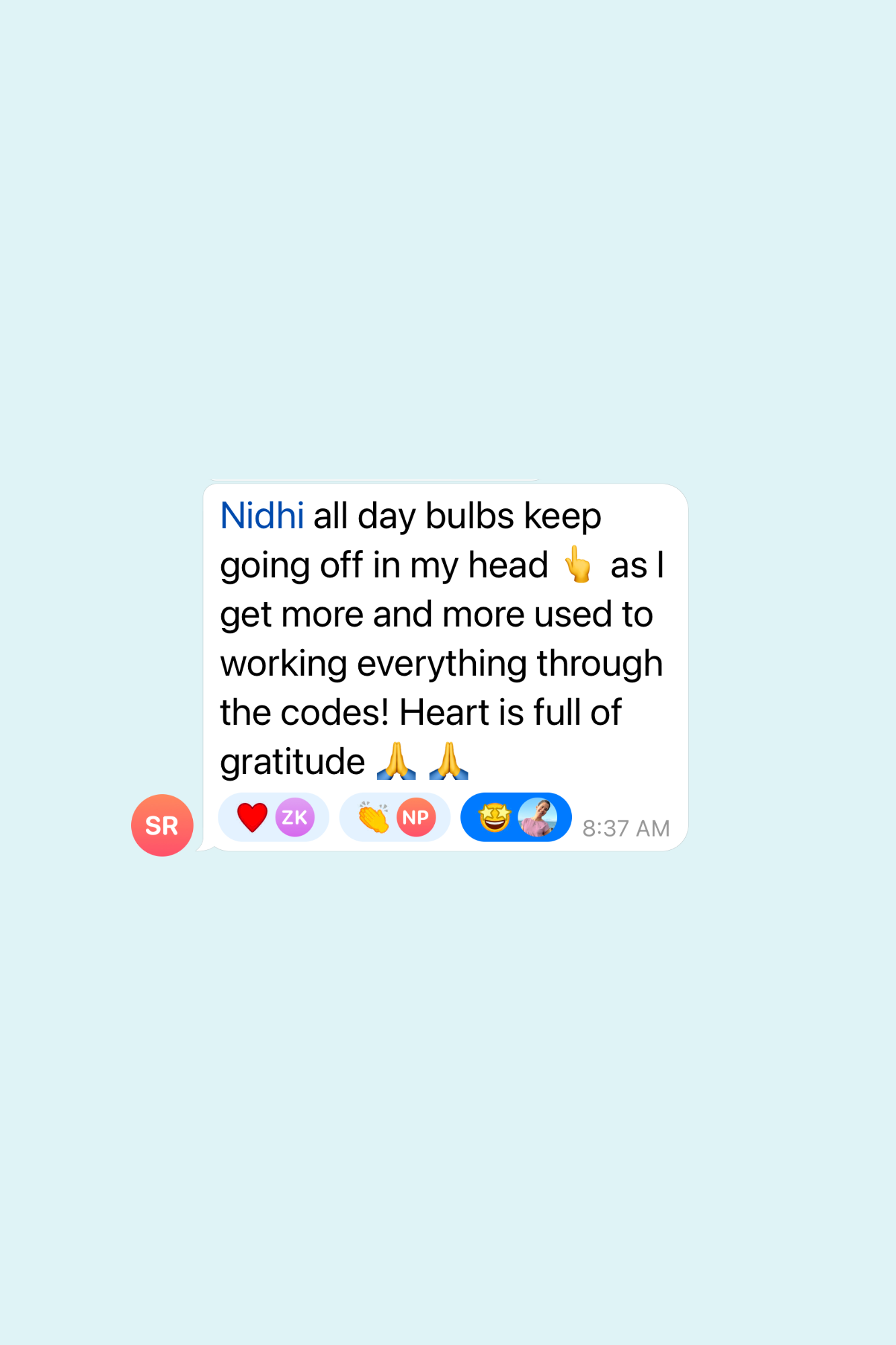 ✓ 8 live group calls with Nidhi for teaching, coaching, and Q&A (120 minutes each)