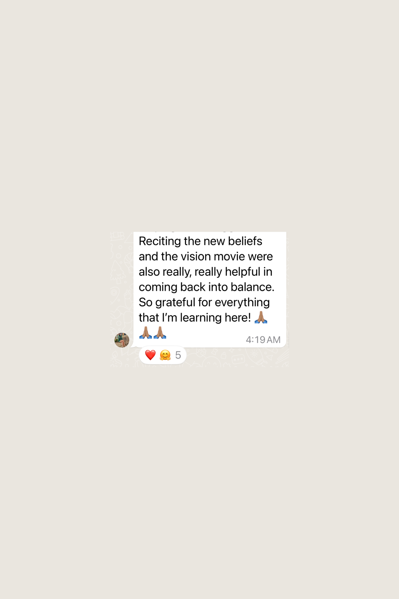 Attend the live calls (we ask for at least 80% live attendance), or watch the replays if you miss one. Move through the material, follow the guidance, and most importantly - apply what you’re learning in your day-to-day life. Engage in the process, ask questions, and stay present with it.