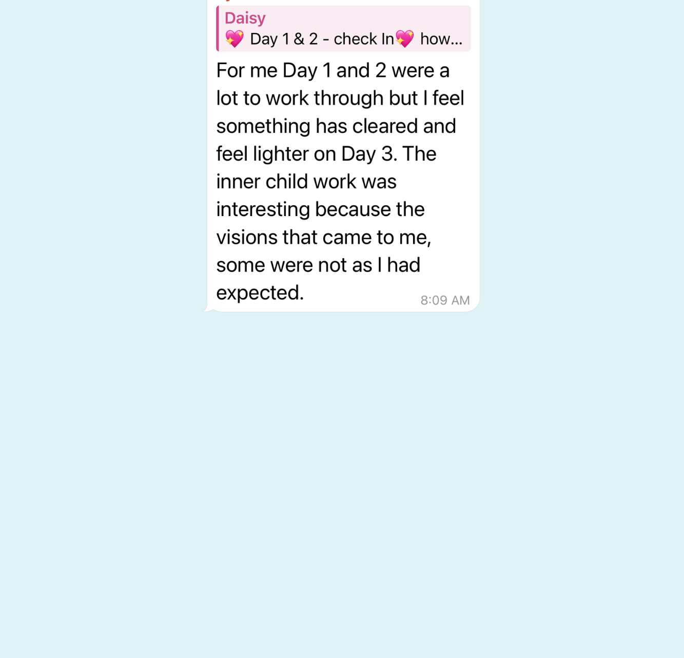 Expect about 30–45 minutes daily for learning and integration. Some days are lighter. Some are deeper. The shifts are practical and woven into your normal life — not added as a second full-time job. If you can’t make it to the calls, replays are available.