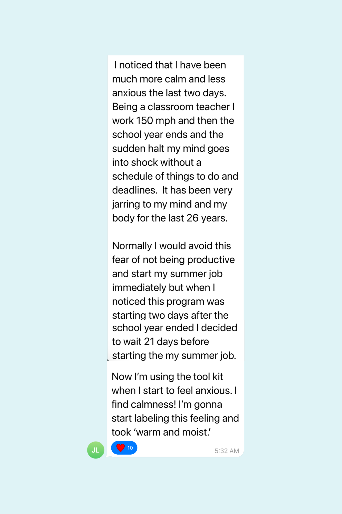 That’s why there is a 30-day guarantee. Participate fully. Apply the teachings. If you don’t experience meaningful improvement, email us at [email protected] within 30 days for a refund. The program is 21 days, the refund is 30. You have plenty of time to feel the changes. And either way, if you apply yourself, the changes usually start coming up week 1.