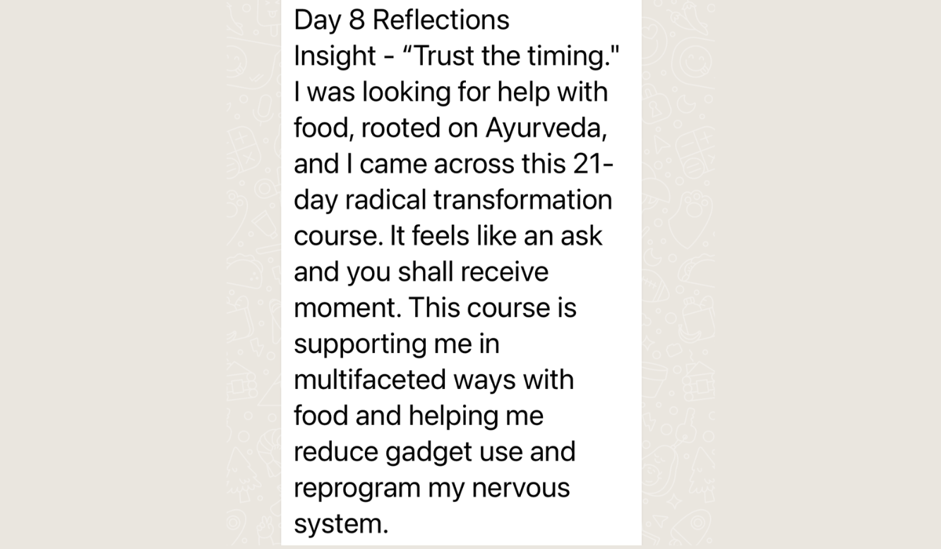 Join the 21-Day Radical Ayurvedic Reset, fully step in, and give yourself the experience this program is designed to offer.